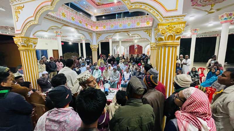 ঝালকাঠি-১ আসনে জামায়াতের প্রার্থী ফয়জুল হক কাঁঠালিয়া আওরাবুনিয়া ইউনিয়নের সাতানি বাজারের পশ্চিম ছিকটি গ্রামে মন্দিরের ভেতরে উঠান বৈঠক করেন। ছবিটি প্রার্থীর ফেসবুক আইডি থেকে সংগৃহীত।